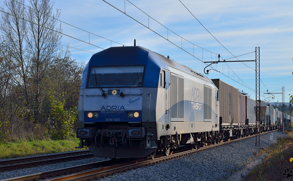 ADRIA Transport 2015 920 'Irena' zieht Containerzug durch Maribor-Tabor Richtung Norden. /8.11.2012