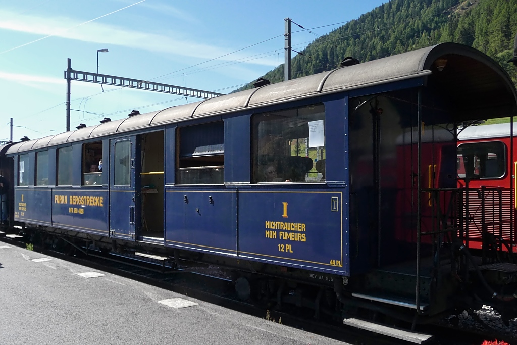 Personenwagen zweiter und erster Klasse mit Dienstabteil der DFB in Oberwald, 2.10.11.