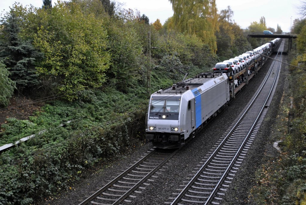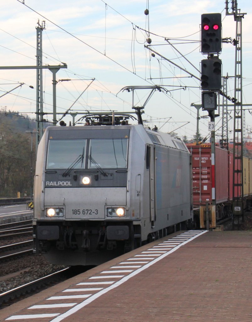 Railpool 185 672 zieht am 09.11.2012 einen Containerzug durch Fulda.
