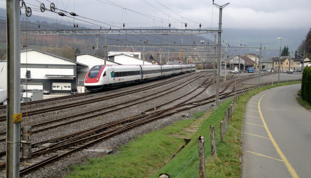 Der ICN RABDe 500 005-8 "Vincenzo Vela" durchfährt am 13.11.2012 den Bahnhof Zwingen.