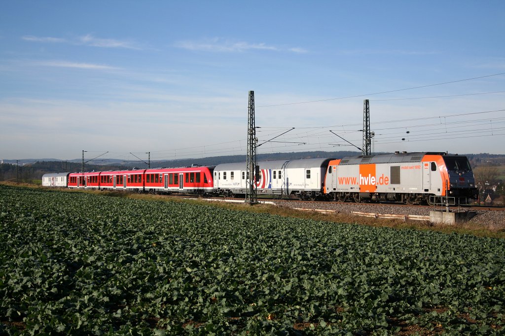 185 183-1 zieht am 24. November 2012 EZ 51713 nach Nürnberg Rbf durch Kronach.