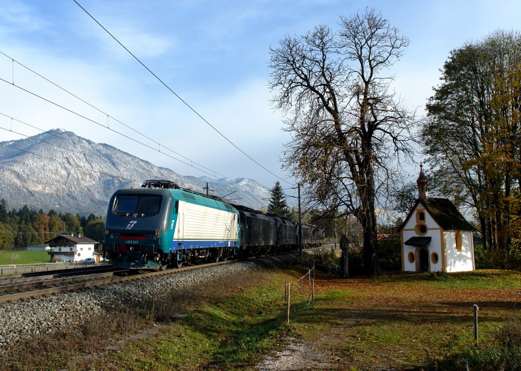 Ein Lokzug von TXL bestehend aus E 412 017, 189 1xx, 182 59x, 189 103 und 189 916 am 30.10.2012 unterwegs bei Brixlegg.