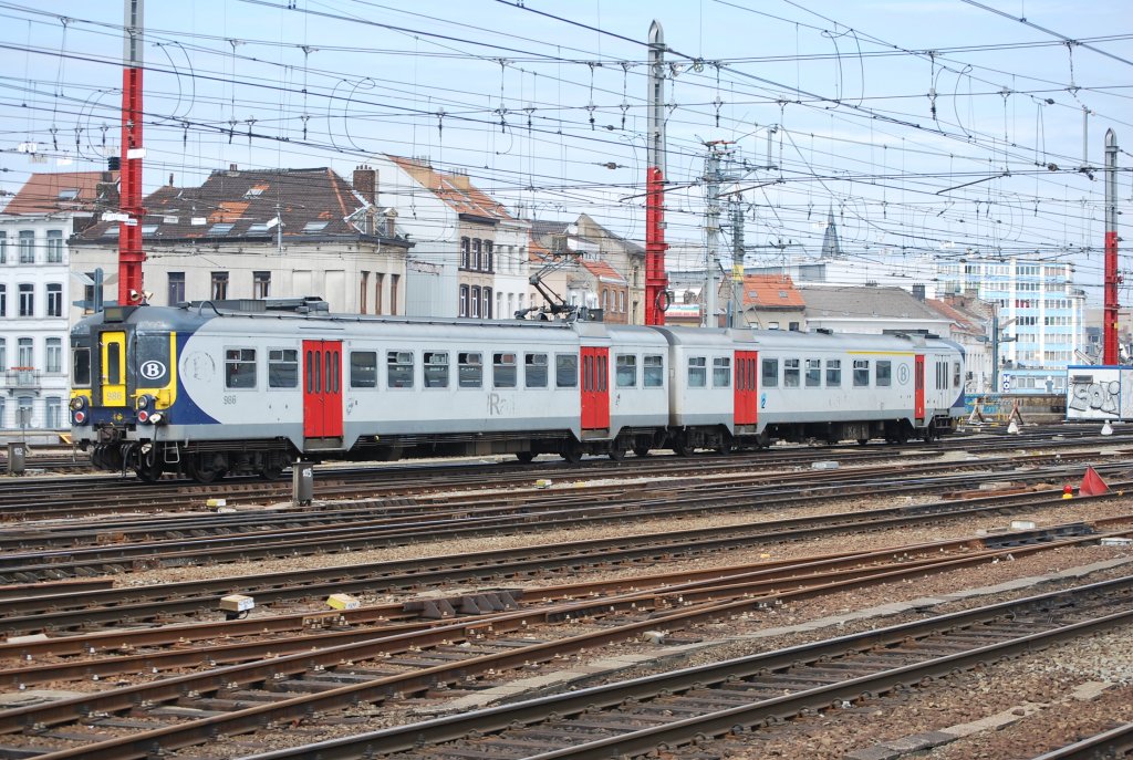 Triebzug AM CityRail Nr.966 kommt am 2. Juni 2012 in den Brüsseler Südbahnhof (Bruxelles-Midi) herein.