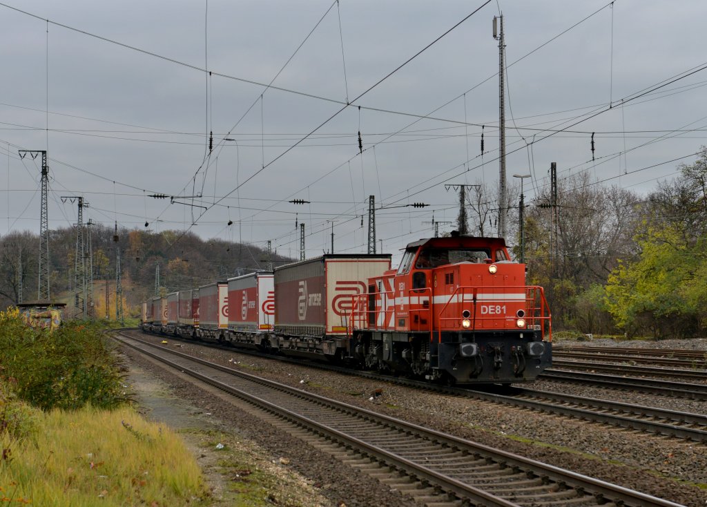 Lok 40 (212 903) der Rhenus Rail hat einen Containerzug vom Mannheimer Handelshafen übernommen und zieht ihn in den Rangierbahnhof.(21.11.2012)