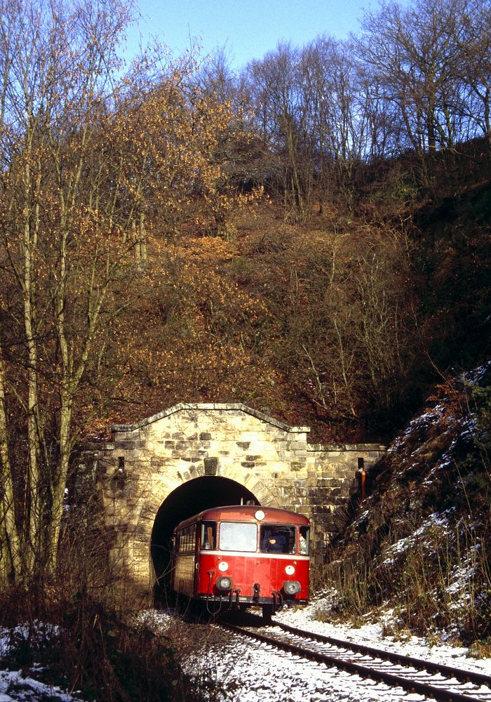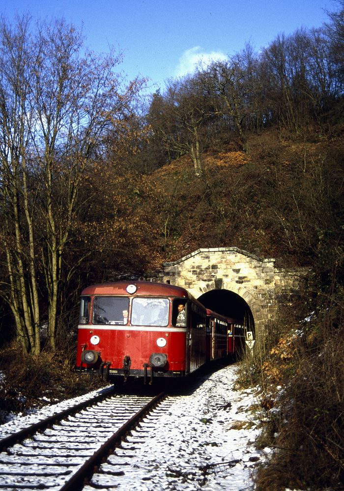 798 823-1 + 998 184-6 + 998 859-3 am Dodenauer Tunnel am 05.12.1992 im Rahmen der Sonderfahrt "Abschied von der Edertalbahn"