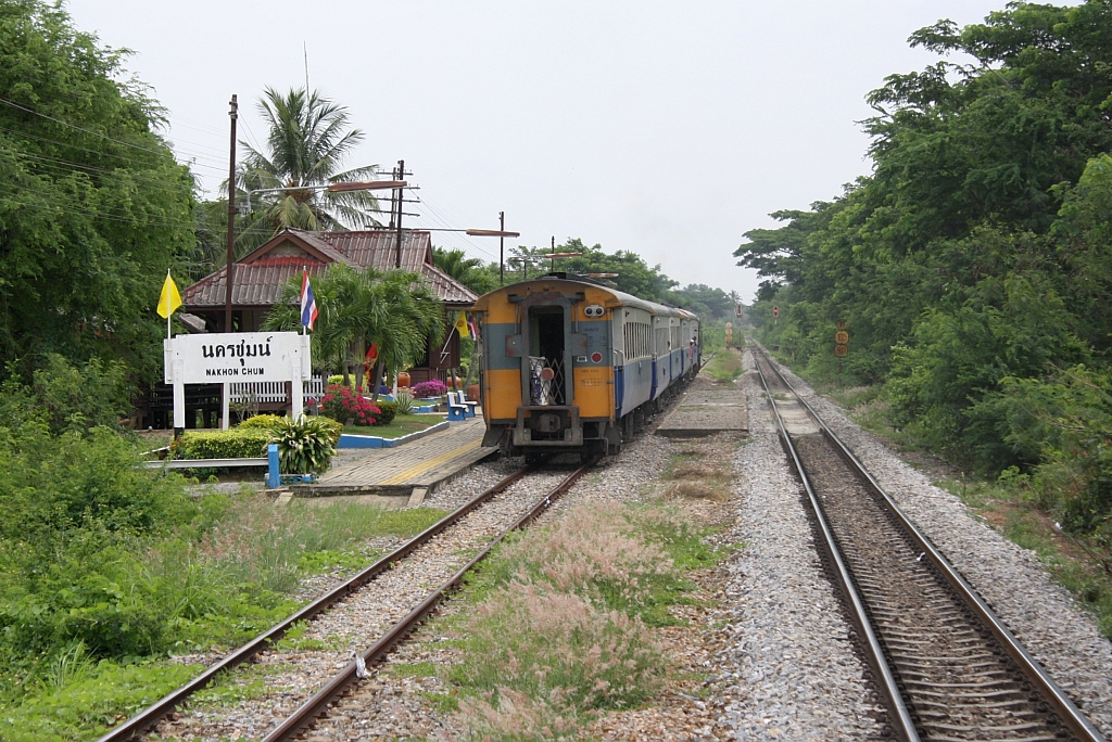 Zuglaufschild des Excursionstrain 909 nach Nam Tok Sai Yok Noi am 03.Juni 2012 in der Nakhon Pathom Station.