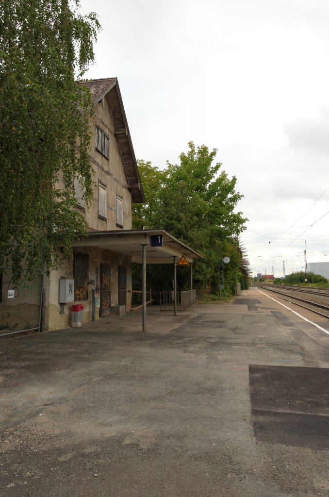 Bahnhof Gersthofen, Gleisseite. Der Bahnhof ist jetzt im Besitz der Stadt Gersthofen. Noch offen ist, ob er renoviert oder abgerissen wird. 15.08.2012