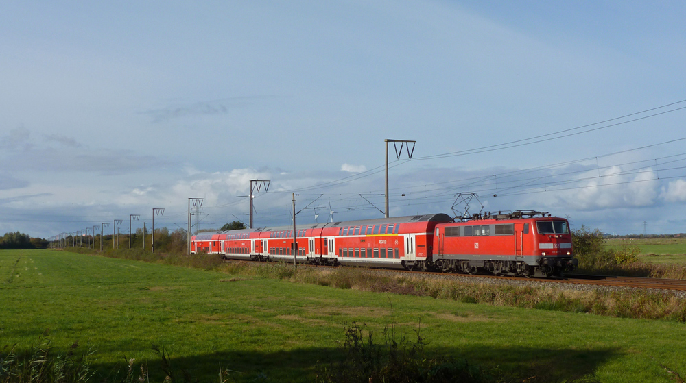 111 141-8 fuhr am 30.10.2012 mit einem RE von Emden nach Münster, hier bei Petkum.