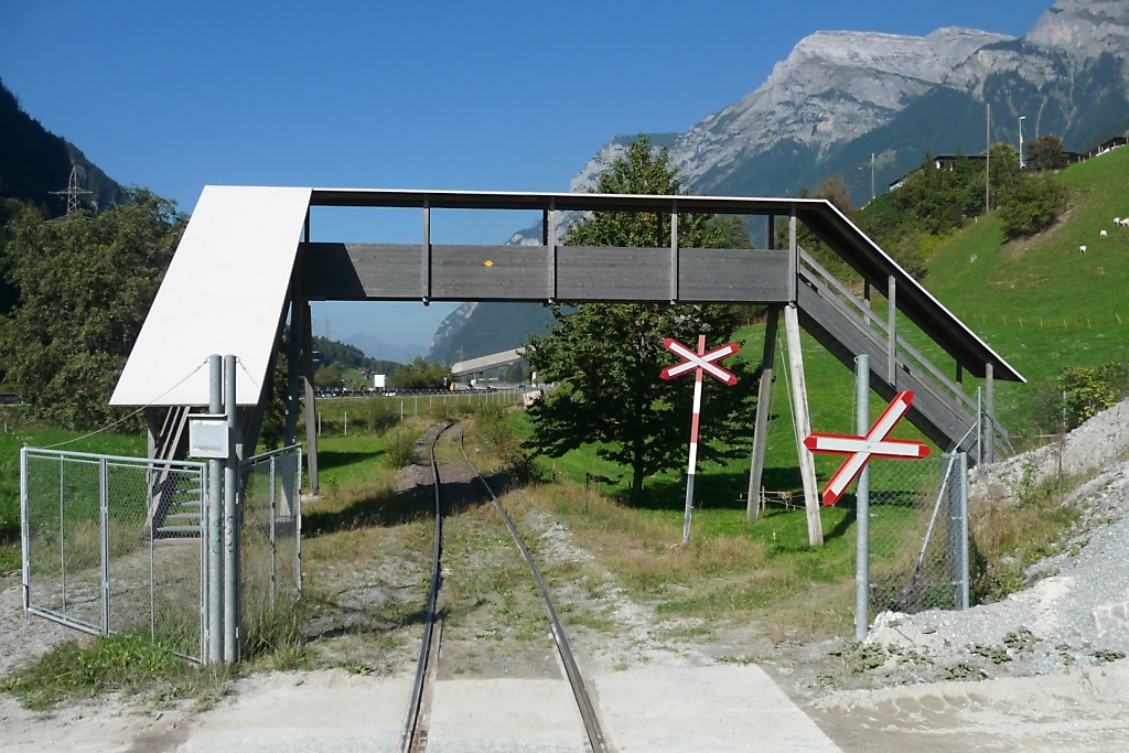 Diese Brücke über das Anschlussgleis wird dann auch nicht mehr benötigt. (Amsteg, 1.10.2011)