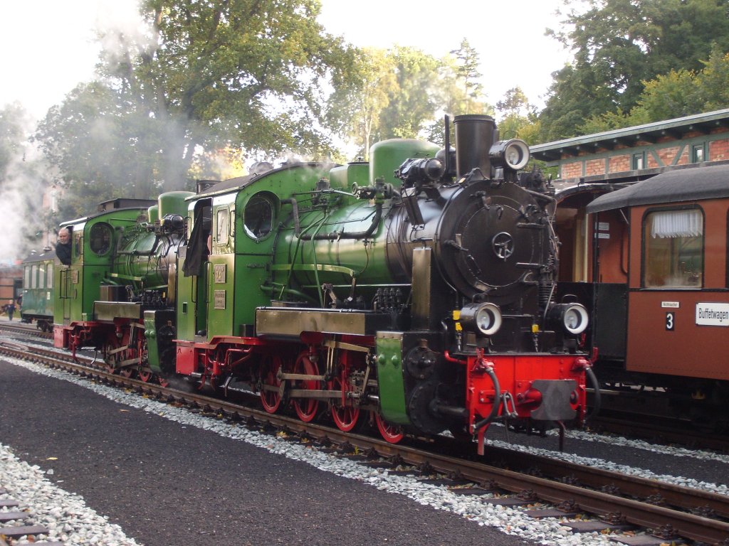 Doppelbespannung beim Rasenden Roland , gleich zwei Loks aus der Baureihe Vulcan , Mh 52 und Mh 53 , wurden am 6.10.2012 zwischen Göhren und Putbus eingesetzt.