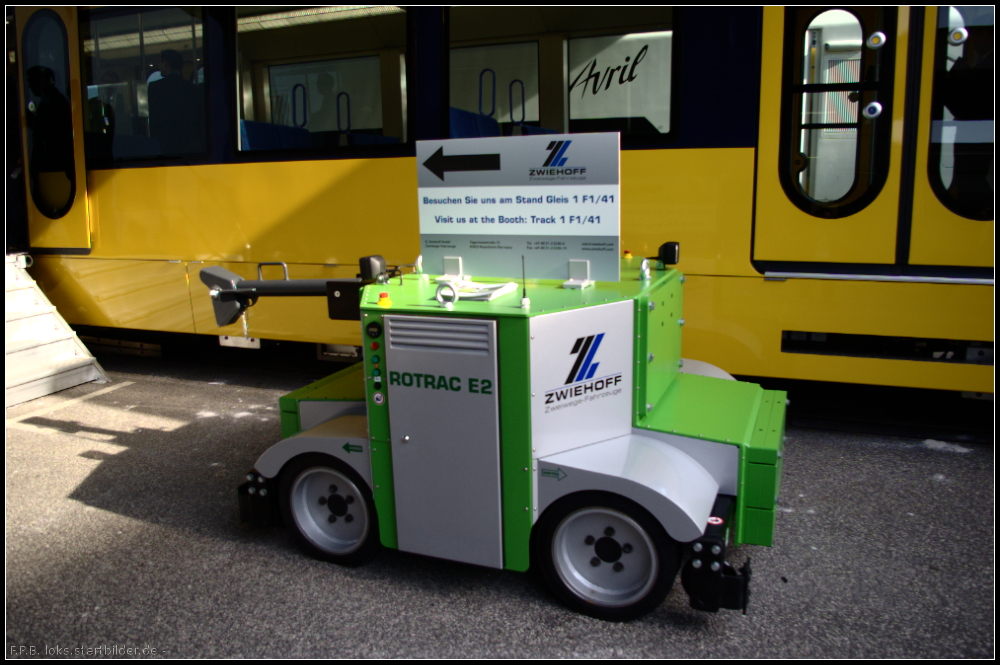 Klein und unscheinbar: Der Zwiehoff ROTRAC E2 ist ein batteriebetriebenes Rangiergerät das bis zu 250t bewegen kann. Zu sehen war das Zweiwegefahrzeug auf der InnoTrans 2012