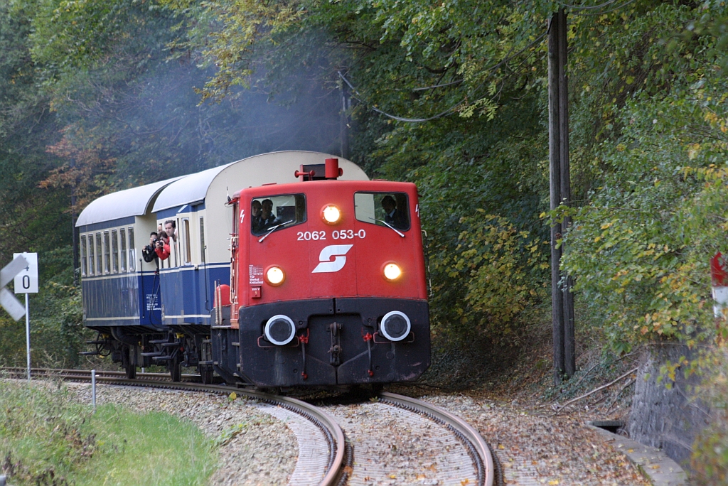 FROWOS 2062 053-0 fährt am 13.10.2012 auf der Kaltenleutgebener Bahn als NF 19075 aus dem ehemaligen Bhf. Rodaun aus.