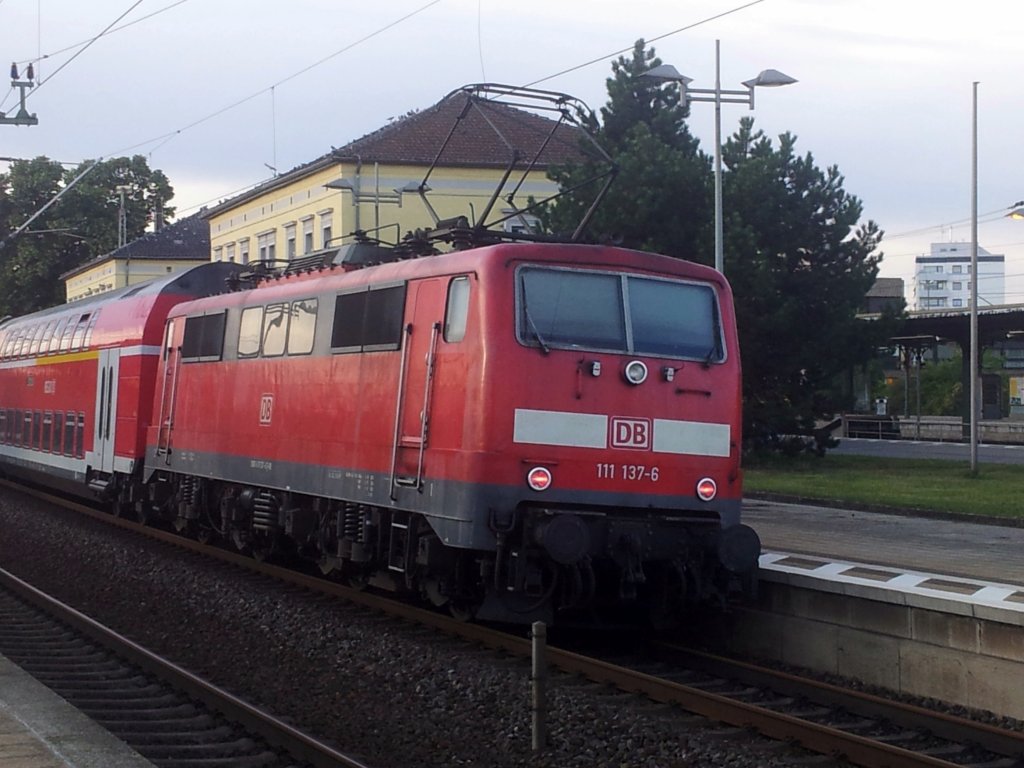 111 068-4 mit einem Regionalexpress in Großkarolinenfeld am 17.07.2012
