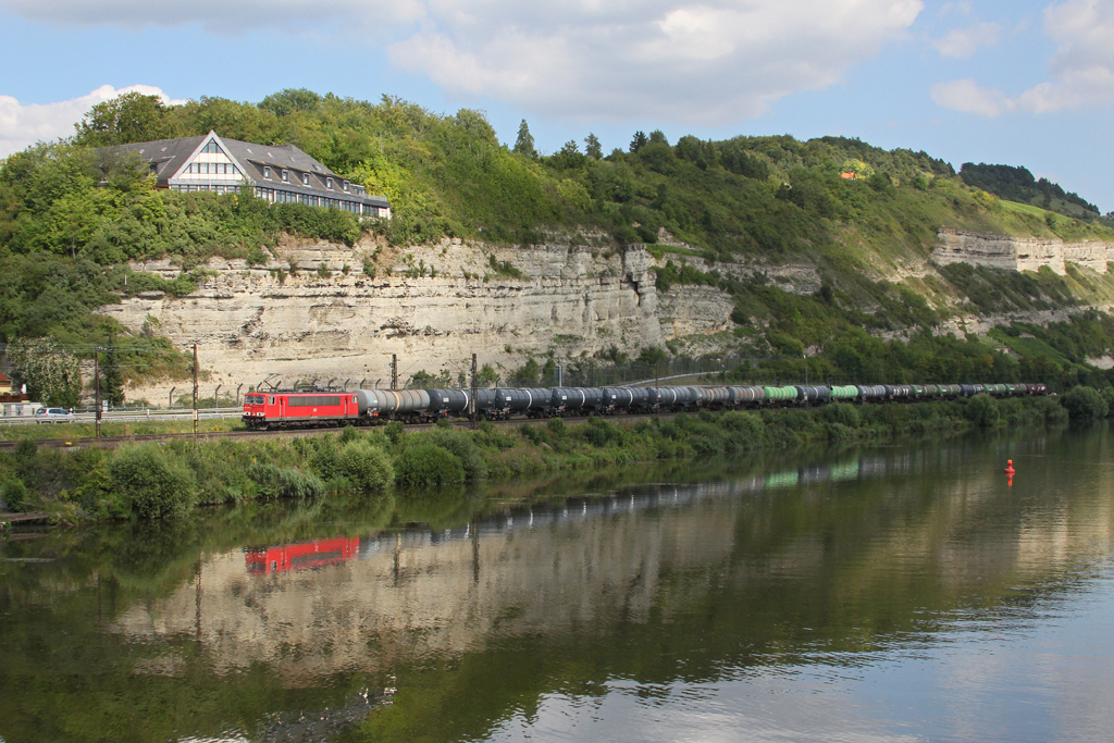 155 175 mit einem Kesselwagenzug am 02.08.2011 im Maintal bei Retzbach-Zellingen.