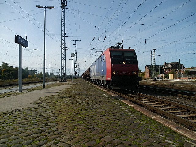 Am 13.10.2012 kam 482 001 mit einem Getreidezug durch Stendal in Richtung Magdeburg.
