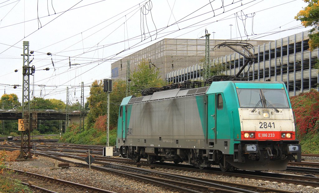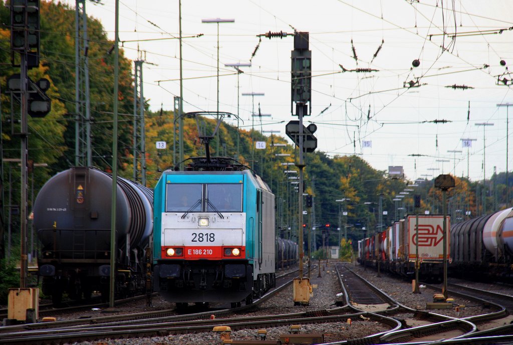 Die belgische 2812 (E-186) fährt mit einen gemischten Güterzug durch den Eschweiler Bahnhof.Aufnahme im Oktober 2012.