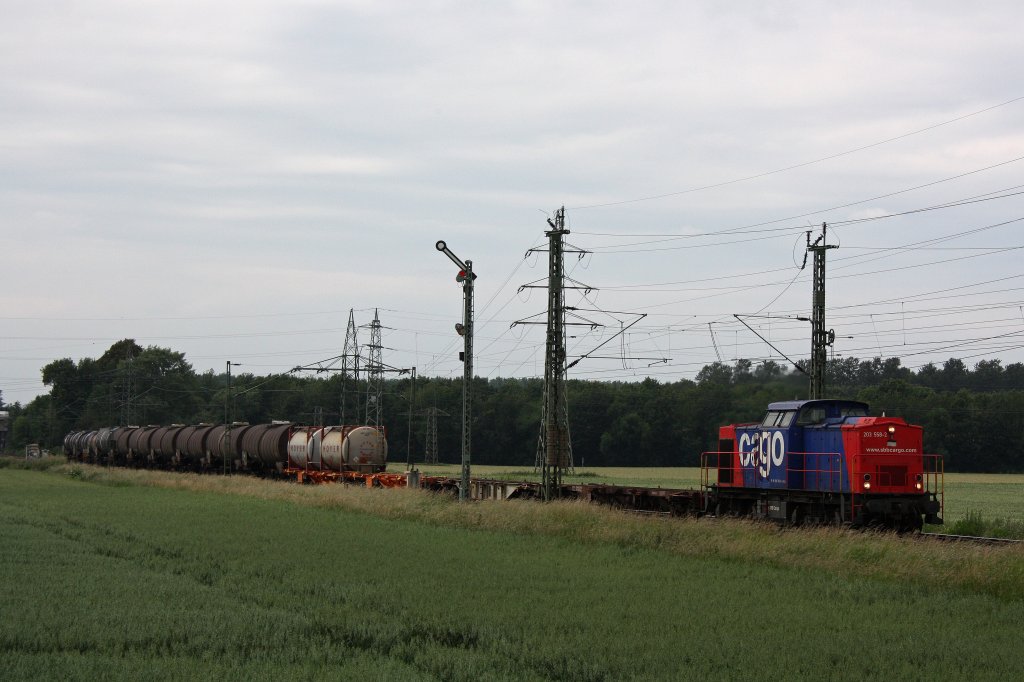 Chemion 203 443-7 am 18.6.12 mit einem Kesselzug in Neuss-Weißenberg.