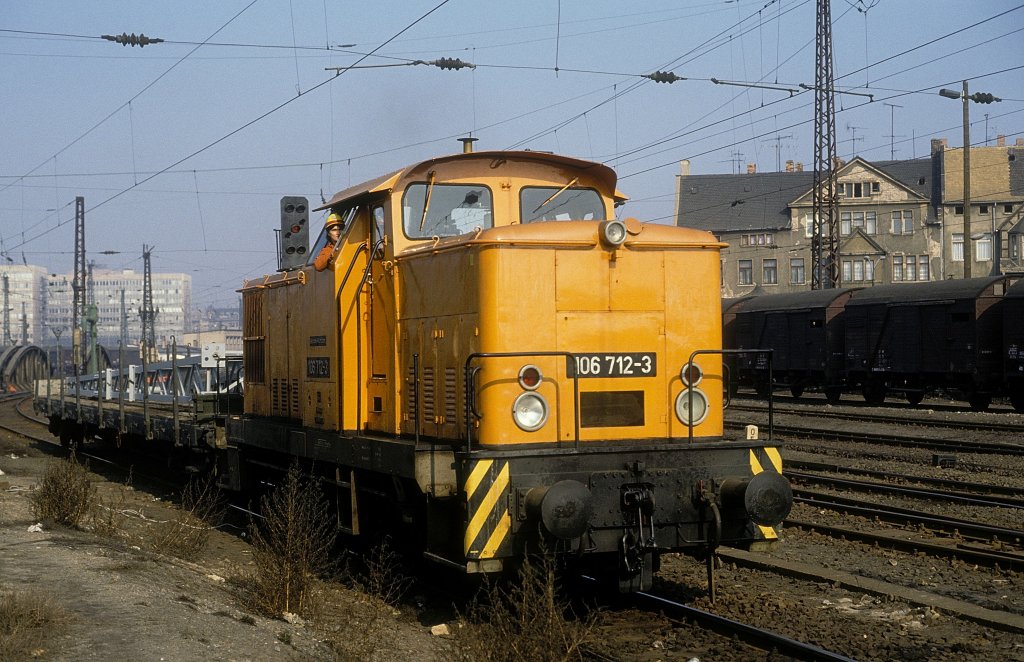Blick ins Bw Saalfeld von der damals stets von Eisenbahnfreunden belagerten Brücke. Am 26.September 1980 habe ich 01 0510 und daneben 119 014 festgehalten.