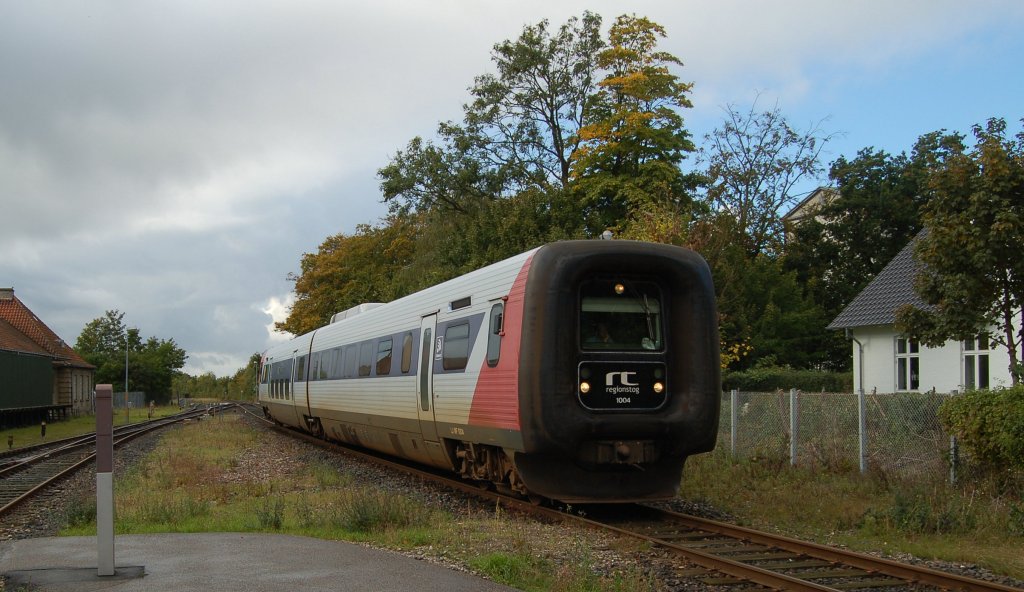 Regionstog 1004 als Regionalzug, Nakskov -Nyköbing(F), bei der Einfahrt in den Bahnhof von Maribo, dort wird er die Kreuzung des Gegenzuges abwarten. 11.10.2012