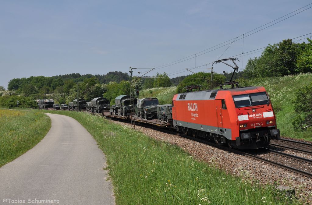 152 115 mit Militärzug am 19.05.2012 bei Pölling