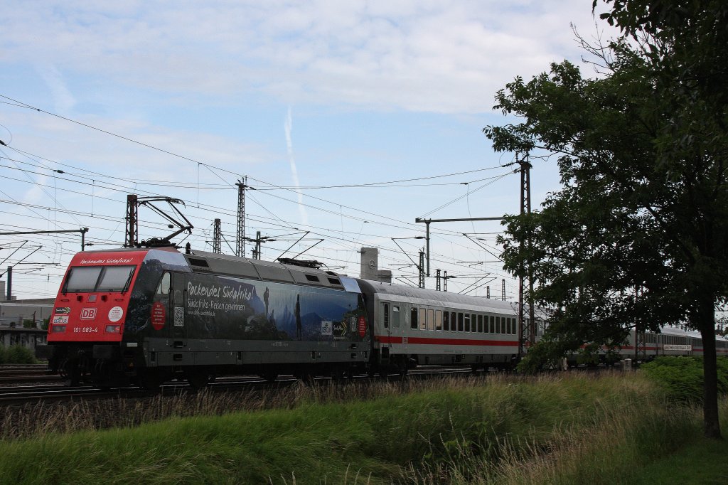 101 083 schiebt am 23.6.12 einen IC durch Düsseldorf-Derendorf.