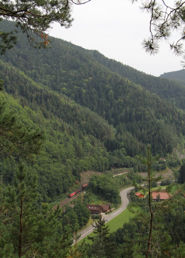 DISPO/CSV 182 581 fuhr am 05.09.12 durch den Graben mit dem LOGS-LGAG 61013 (Linz Stahlwerke - Eisenerz), Aufnahme bei Trattenbach