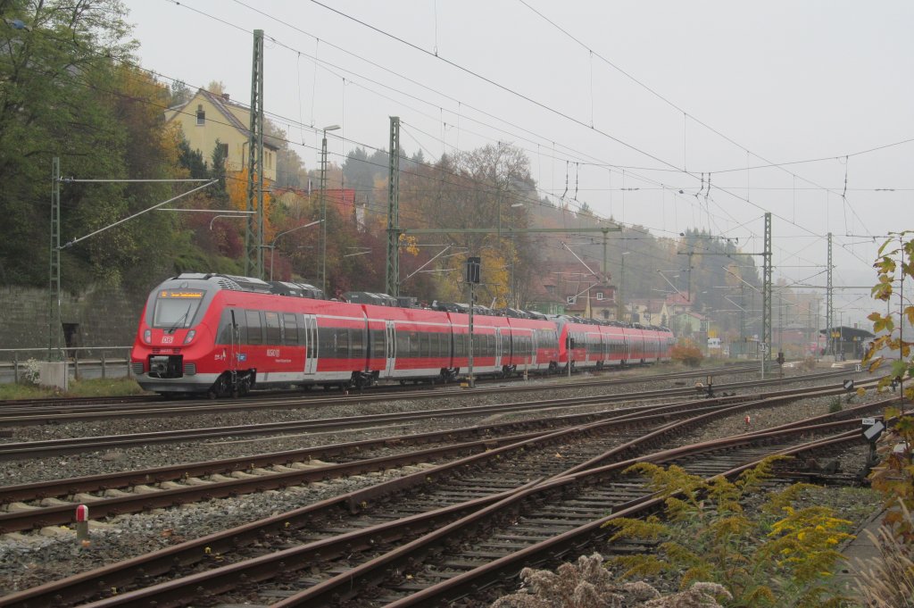 442 277 und 442 306 erreichen am 24. Oktober 2012 als Lt 70727 (Nürnberg Hbf - Kronach) den Bahnhof Kronach auf Gleis 5.