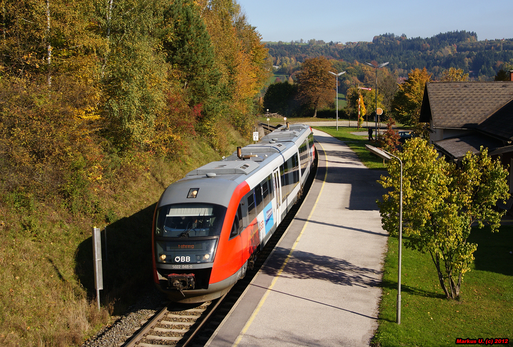 5022 048 verlässt am 22.10.2012 als REX/R2709 (Wiener Neustadt Hbf - Fehring) die Haltestelle Pinggau Markt.