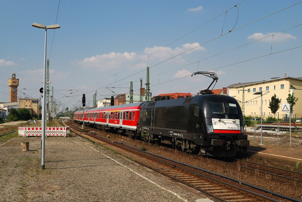ES 64 U2 - 037 schiebt RB 16325 in Merseburg (26.07.2012)