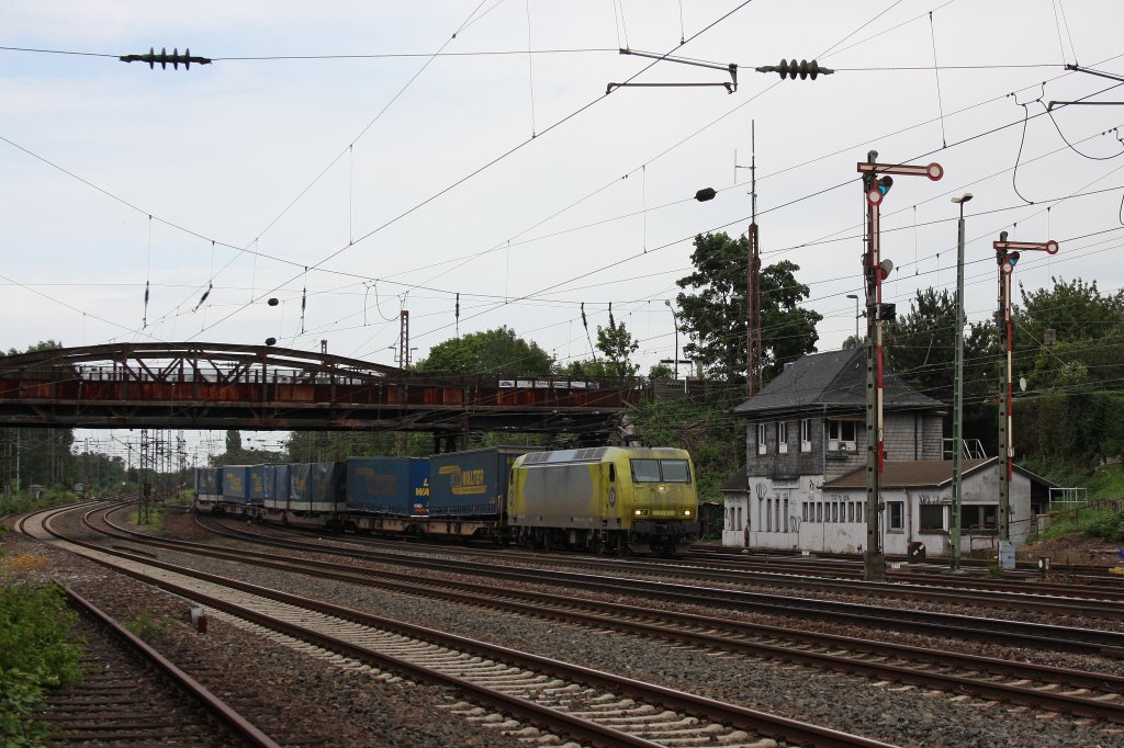 AlphaTrains/Crossrail 145-CL 031 am 28.6.12 mit einem LKW-Walter KLV von Duisburg-Ruhrort nach Domodossola bei der Einfahrt in Düsseldorf-Rath.Der Zug fuhr nach einem kleinen Halt weiter.