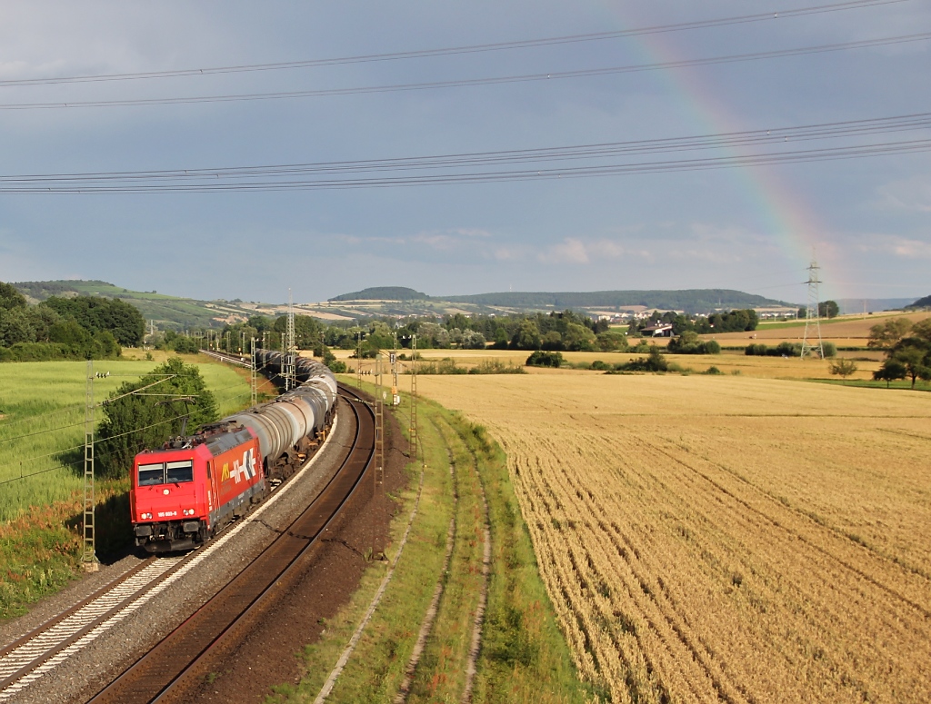 185 152 "K+S" am 28.6.12 mit einem gemischten Güterzug in Düsseldorf-Rath.