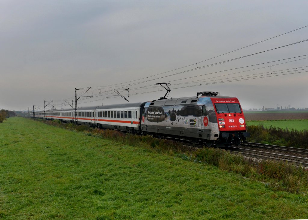 101 025 mit IC 2024 von Passau Hbf nach Hamburg Altona am 29.10.2012 unterwegs bei Plattling.