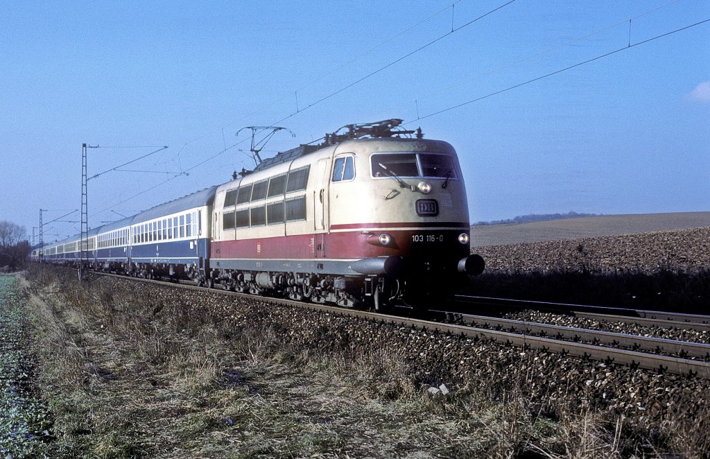 Bad Wildungen am 14.02.1993 mit 216 134 und einer bunten Wagengarnitur.