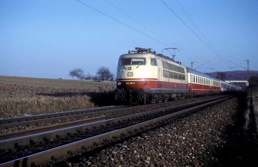 Hier bei Angermund kommt die 120 140-9 mit einem IC vorbei gedonnert an dessen Ende die 101 027-3 kalt anhängt.....dieses pseudo Sandwich verdankt seine Existens wohl dem Mangel an Steuerwagen....Sonntag den 28.10.2012