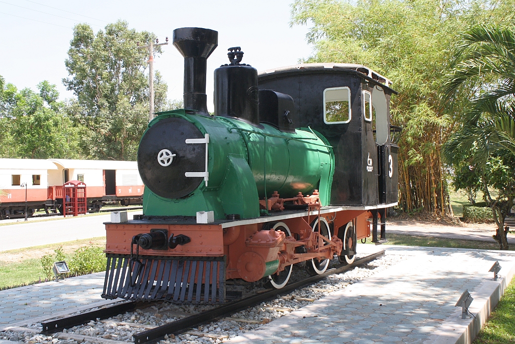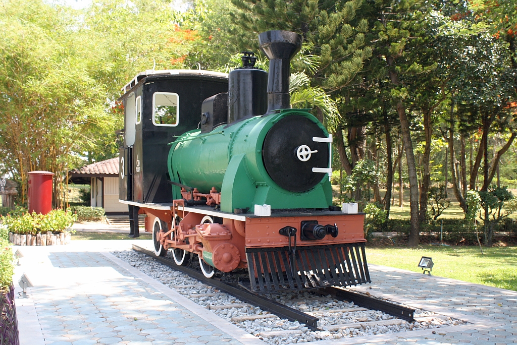 Die MRC 3, ex TRC 3 (B1-n2t, Kraus-Sendling, Bauj. 1905, Fab.Nr. 5418) wurde von der Zufahrt zum Siam Country Club Pattaya zum Eingang desselben umgestellt. Bild vom 15.Mai 2012.