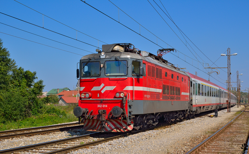 S´ 342-014 zieht EC151 'Emona' durch Pragersko Richtung Ljubljana. /18.9.2012