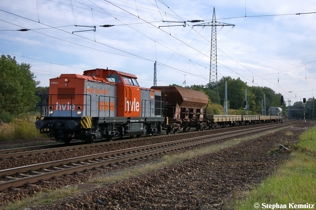 V160.2 (203 014-6) hvle - Havelländische Eisenbahn AG mit einem gemischtem Güterzug in Satzkorn und fuhr in Richtung Priort weiter. 02.10.2012
