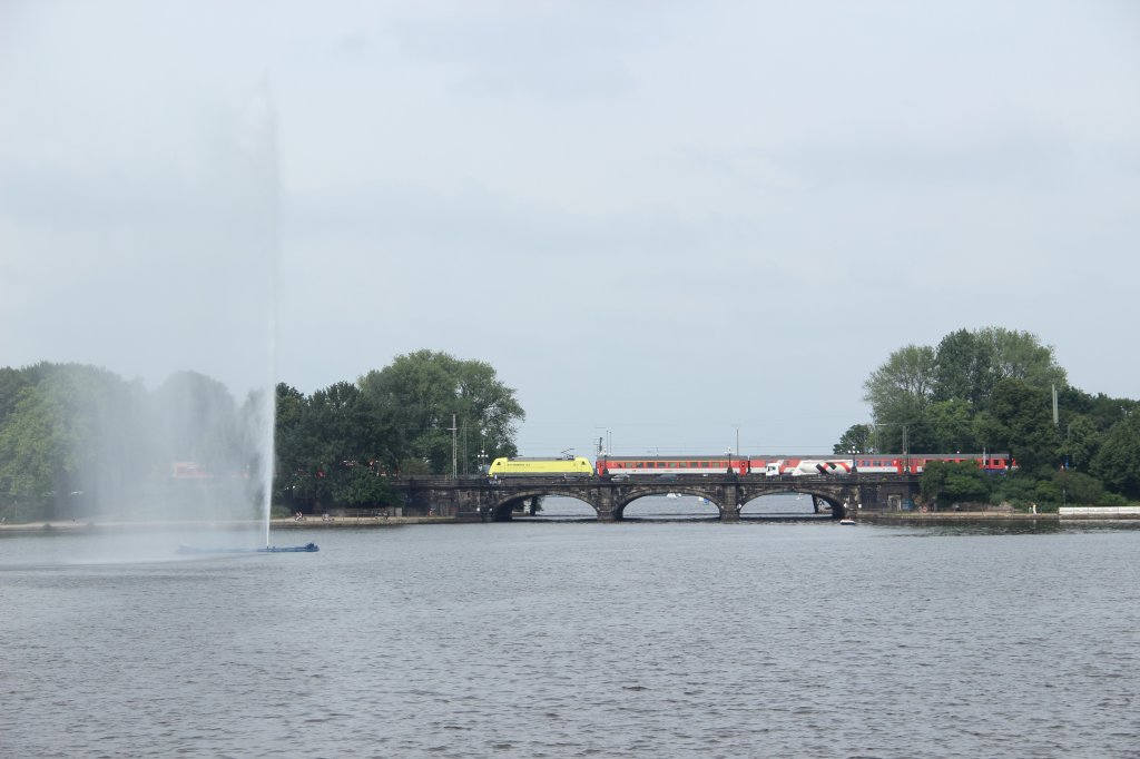Eine unbekannte 112 mit einem Regional Express in Hamburg an der Lombardsbrücke am 05.07.2012