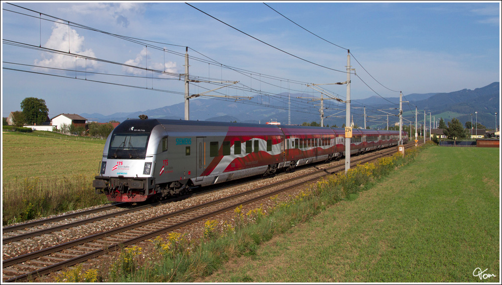 Nachschuss auf den Jubiläumszug "175 Jahre Eisenbahn für Österreich" welcher als RJ 632 "powered by easybank" von Villach nach Wien Meidling unterwegs war.