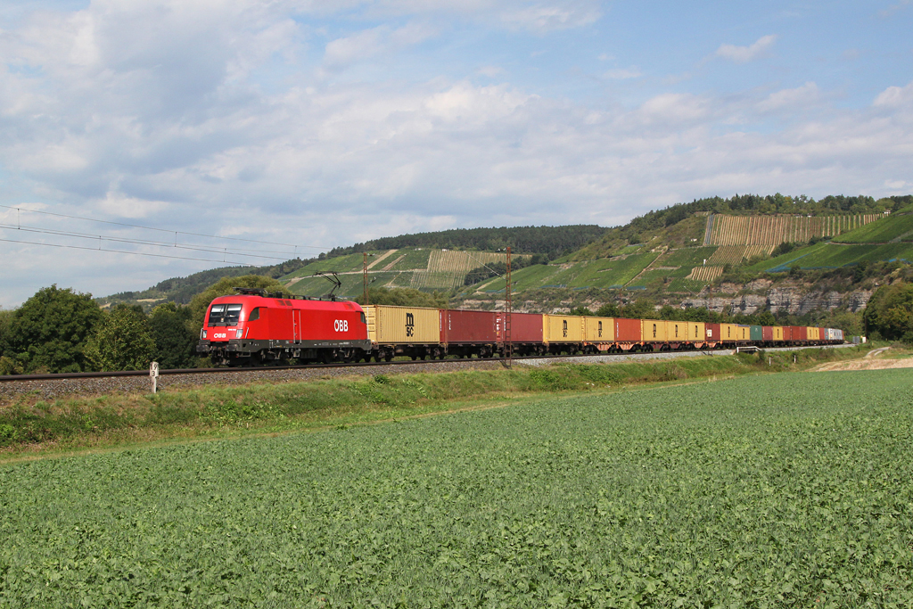 1016 012 mit einem Containerzug am 29.08.2012 bei Himmelstadt.