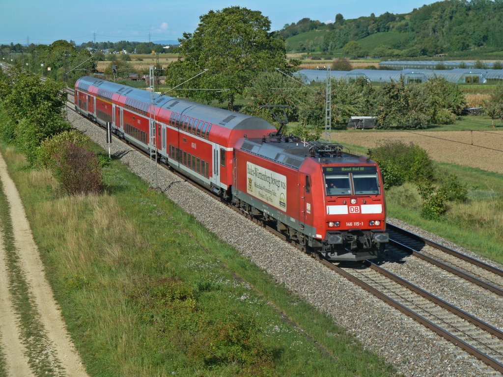 Die Köf im Profil: 335 140-0 drückt am Morgen des 22.08.11 eine Dosto-Garnitur aus dem Freiburger Hauptbahnhof Richtung Abstellung.