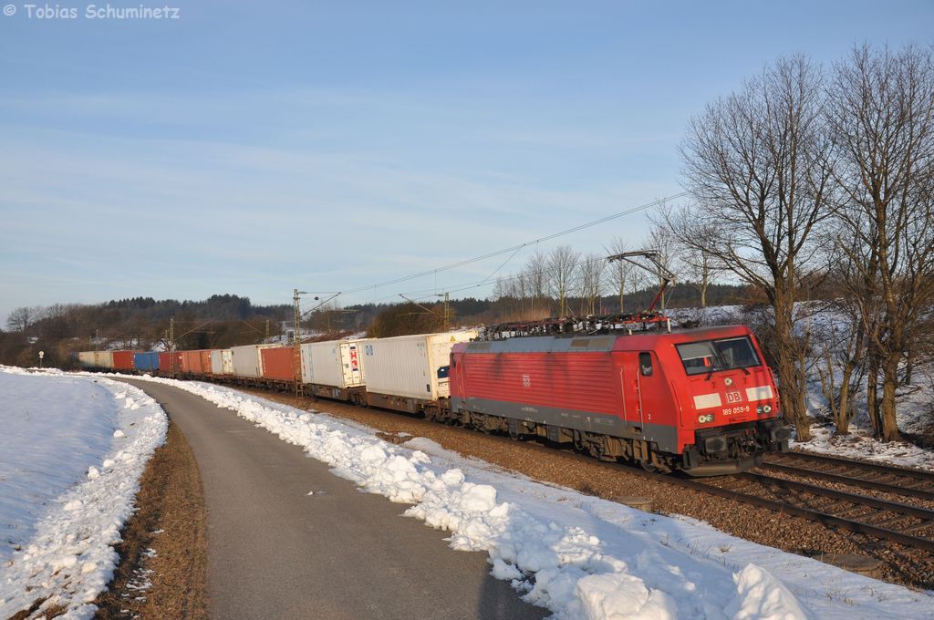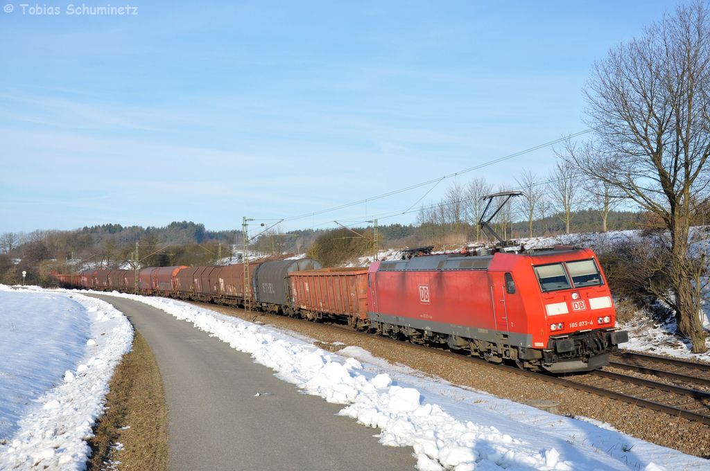 185 362 + 185 311 mit einem Erzzug am 19.01.2013 bei Langenisarhofen.