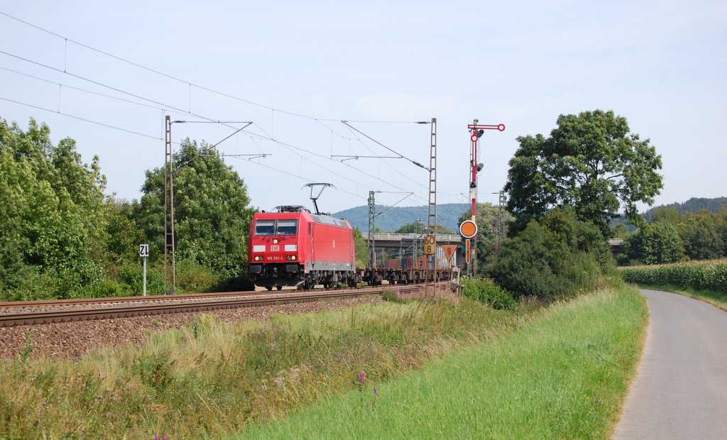 185 086-6 mit einem Güterzug bei der Durchfahrt Neustadt/W. am 10.03.2012.