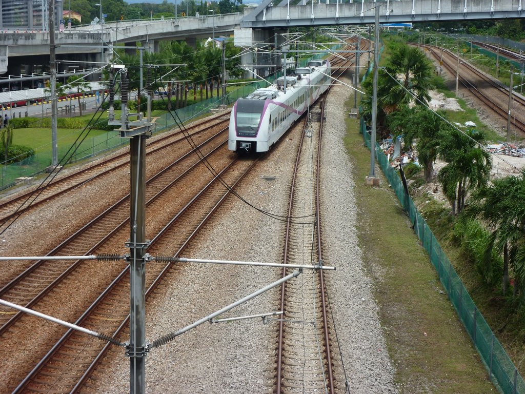 Ein KLIA-Transit Zug am 21.01.2013 auf dem Weg von Kuala Lumpur Sentral zum Flughafen KLIA.