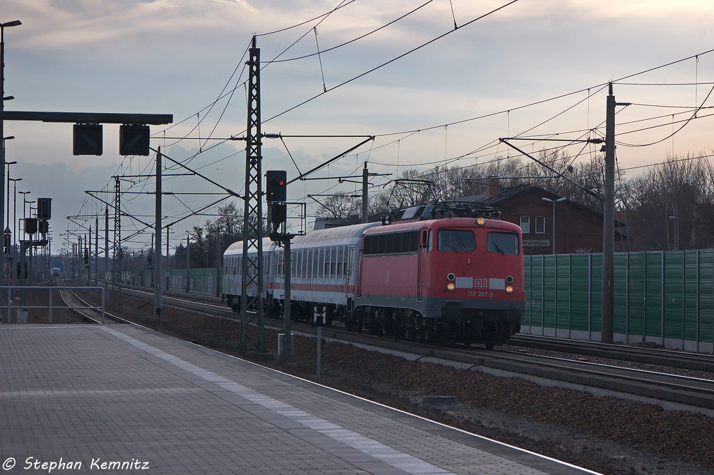 113 267-9 mit zwei Schutzwagen, bei der Durchfahrt in Rathenow und fuhr in Richtung Berlin weiter. Netten Gruß an den Tf! 15.04.2013