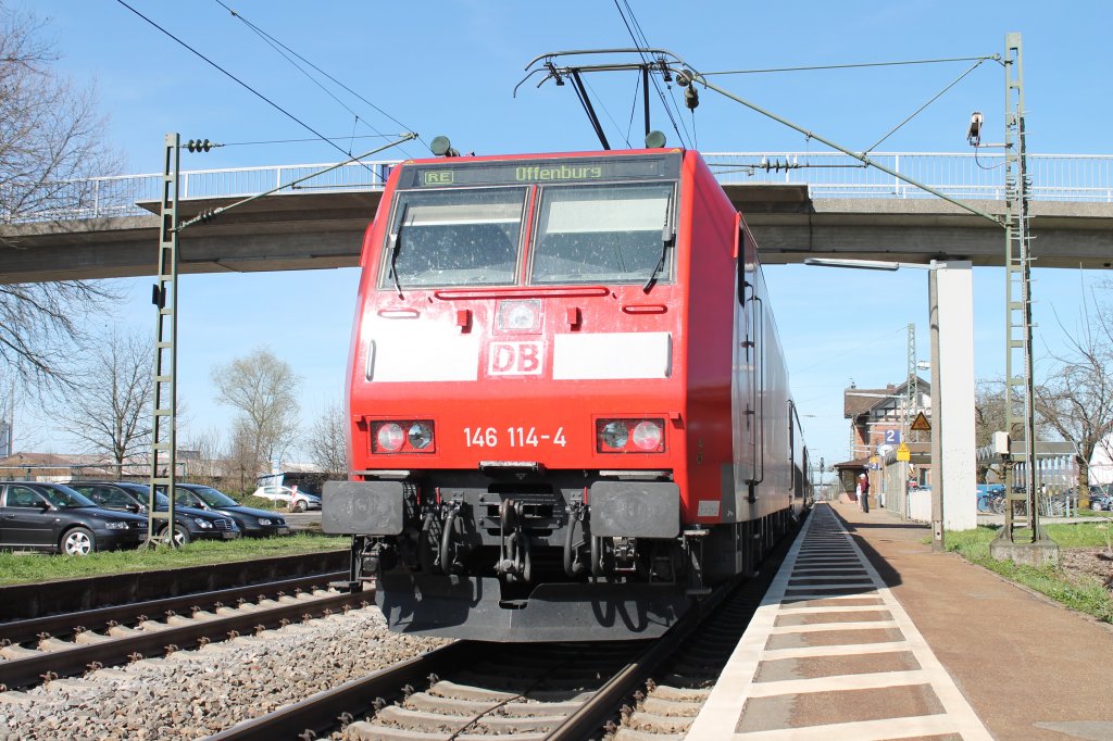 In einigen Bögen führt die Seelinie durch Berlingen hindurch. In Kürze wird die S 8 von Schaffhausen nach Rorschach den Bahnhof von Berlingen erreichen (13.04.2013).
