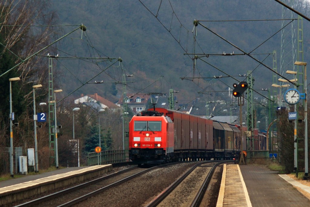 185 228-3 am 03.04.2013 von Süden kommend auf der rechten Rheinstrecke bei Leubsdorf.