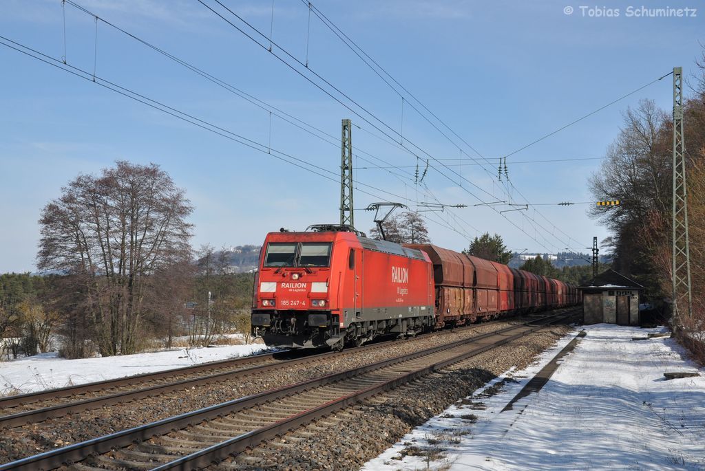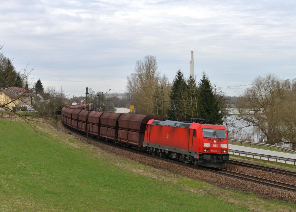 185 356 mit einem Erzzug am 14.04.2013 bei Pleinting.