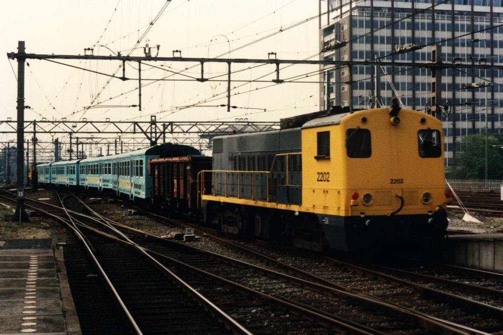 Elektrotriebzug 728 der NS ist am 12.7.1989 als Intercity bei Goersele