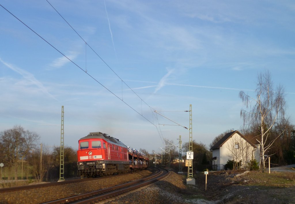 182 561 mit einem Autozug am 14.04.2013 bei Langenisarhofen.